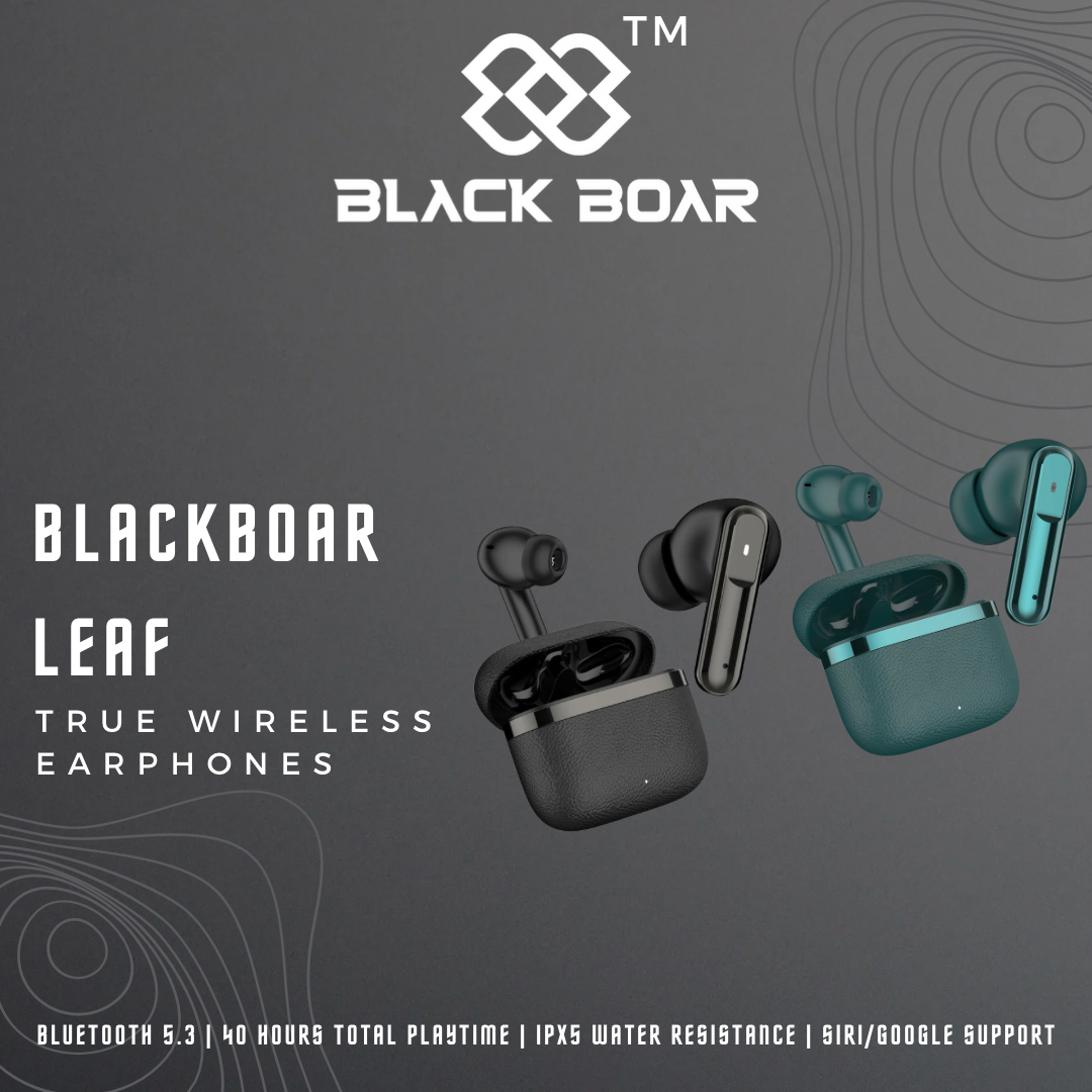 BlackBoar Leaf Truly Wireless in Ear Earbuds with 40H Playtime, ENC Mic, 50ms Low Latency, 10mm Bass Drivers, Type-C Fast Charging, IPX5 Ear Buds TWS (BLACK)